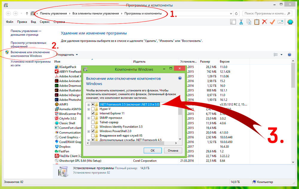 Включение или отключение компонентов Windows. 3. В появившемся окне включите компонент